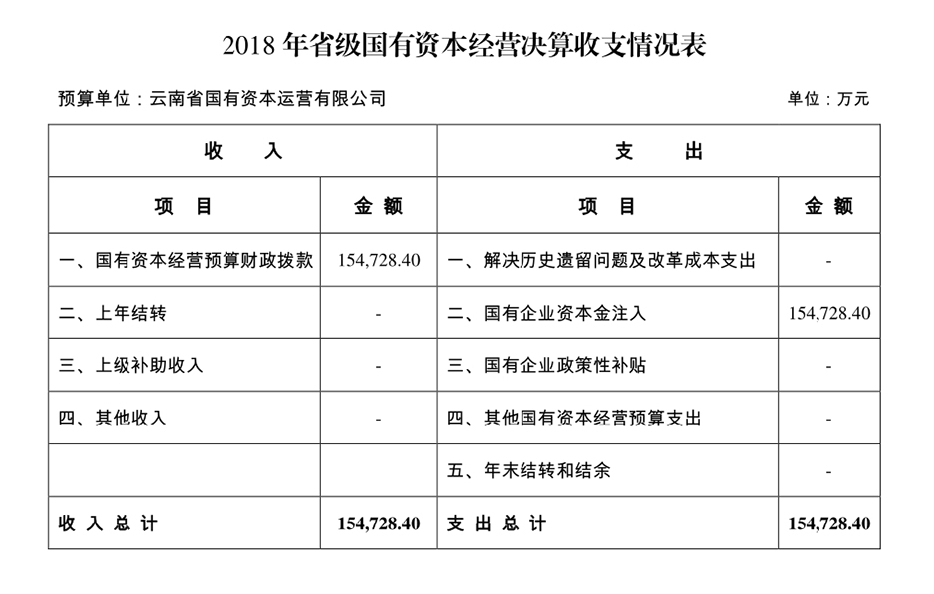 sa36沙龙国际云南资本关于2018年度国有资本经营决算情况的公示
