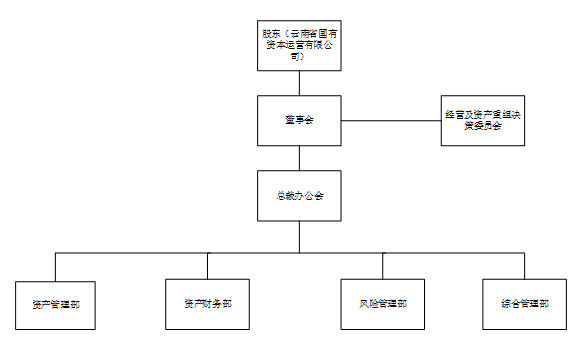 公司内部现由资产管理部、资产财务部、风险控制部、综合管理部四个职能部门组成,最高治理机构是公司董事会,下设经营及资产重组决策委员会和总裁办公会。组织架构图如下: