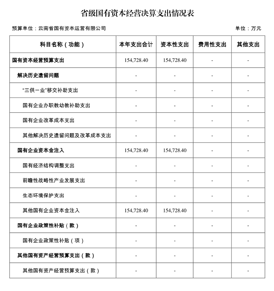 sa36沙龙国际云南资本关于2018年度国有资本经营决算情况的公示