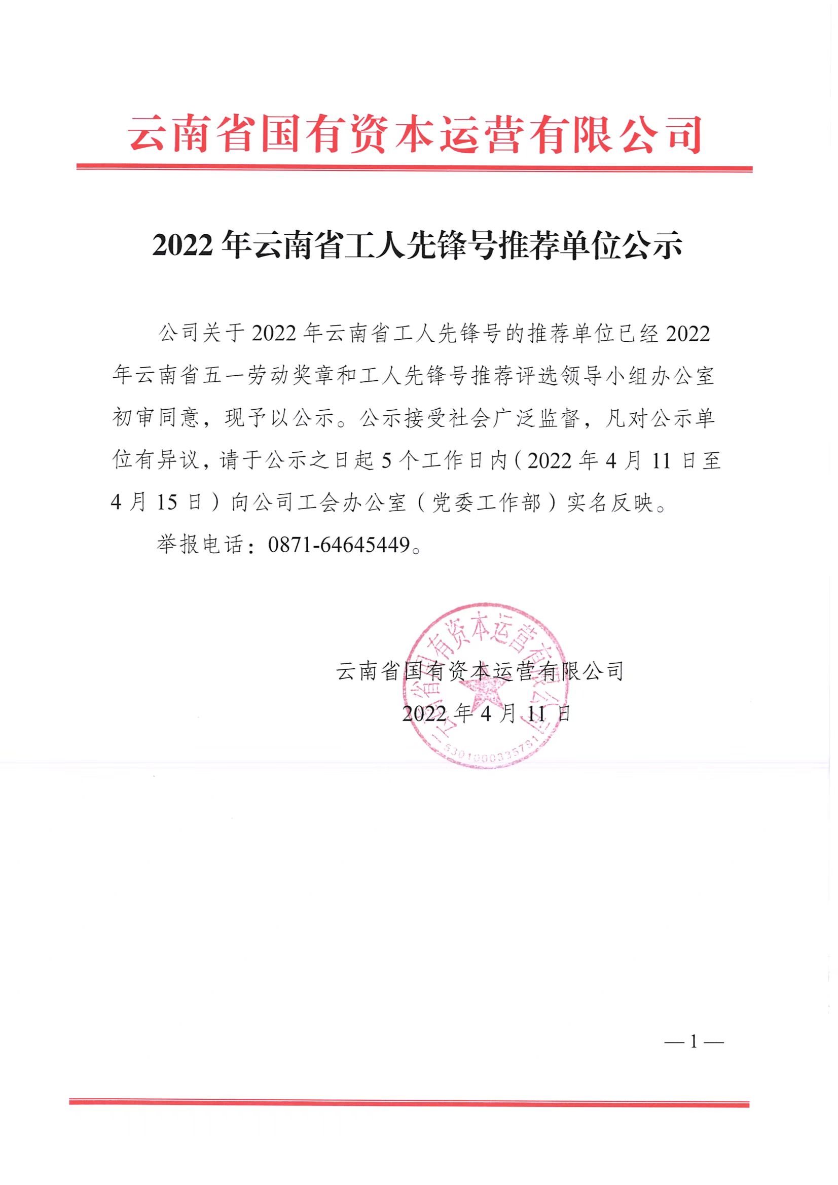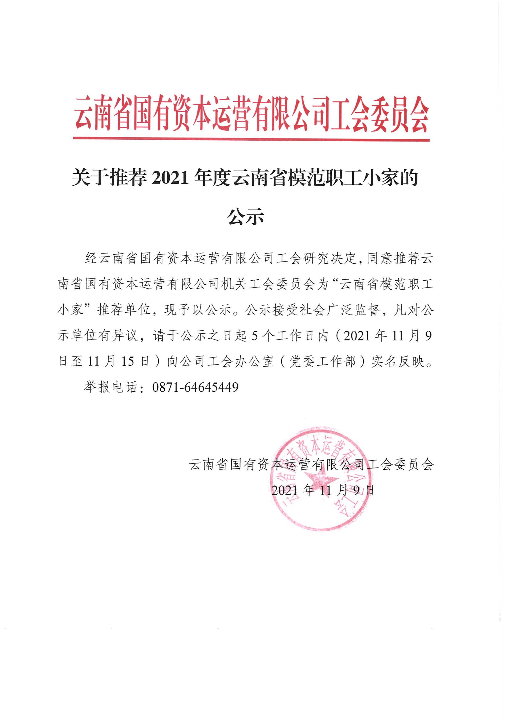 云南资本工会“2021年云南省五一劳动奖章”推荐人选公示