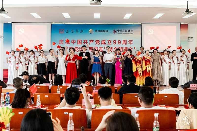 随后举行的“听党话 跟党走”诗文朗诵会,在三家企业党委副书记联袂表演的《我们心中的赞歌》中拉开序幕。来自三家企业的党员干部自创自演的12个节目相继登场,以峥嵘岁月、继往开来、薪火相传、走向复兴四个篇章,讴歌党的光辉历程,歌颂党的伟大成就,表达对党和祖国的忠诚、热爱和赞美,展现了云南国企人的时代职责和担当。感人肺腑的诗篇引来现场掌声阵阵。最后,全场齐声歌唱,衷心祝愿伟大的中国共产党生日快乐,伟大的祖国繁荣昌盛。